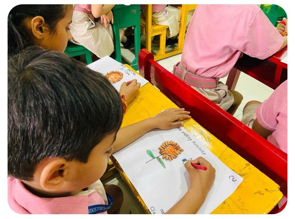 in multifarious activities such as singing, dancing, coloring, cutting, clay modeling,